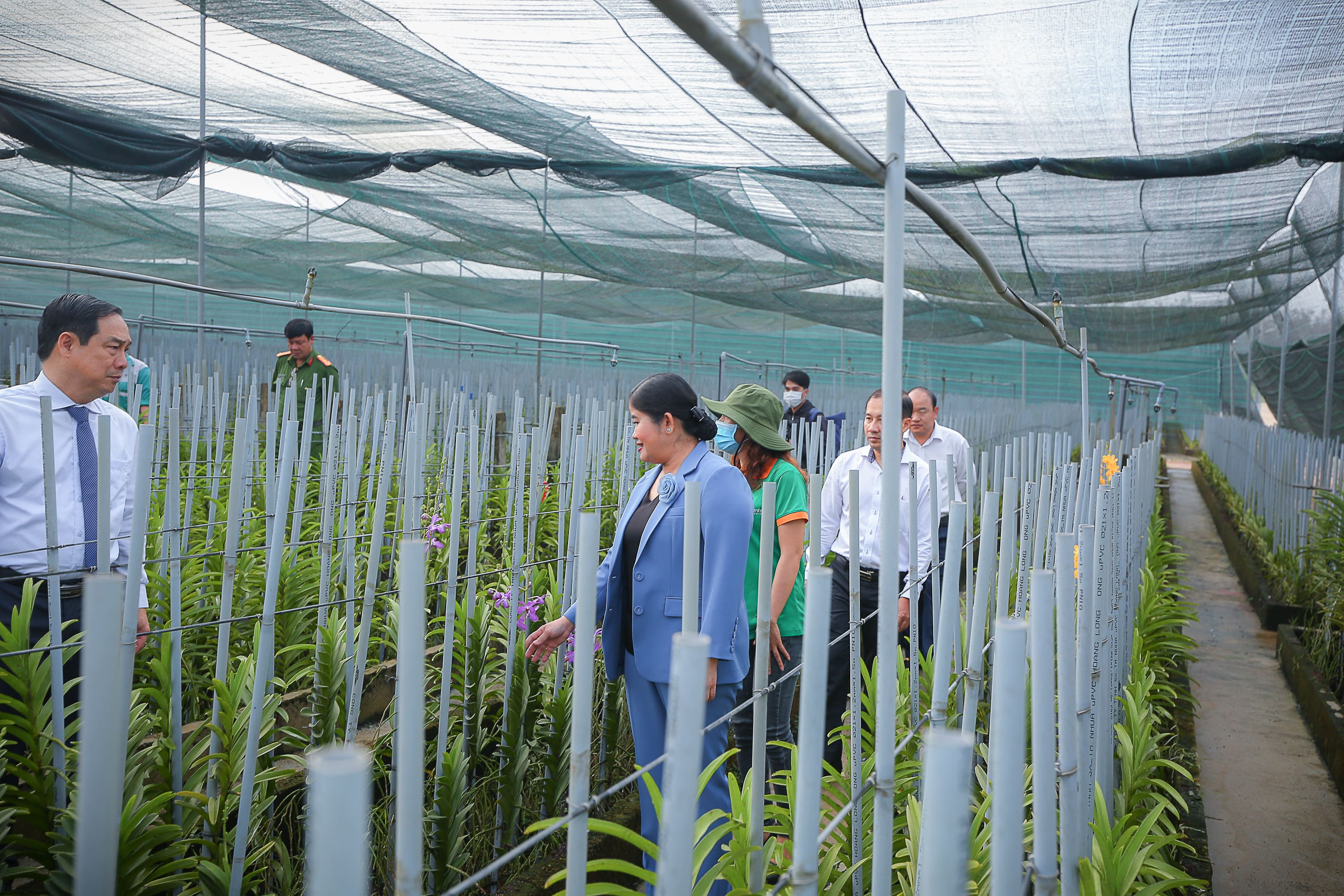 Hình ảnh Bà Trần Tuệ Hiền tham quan vườn hoa Lan Mokara