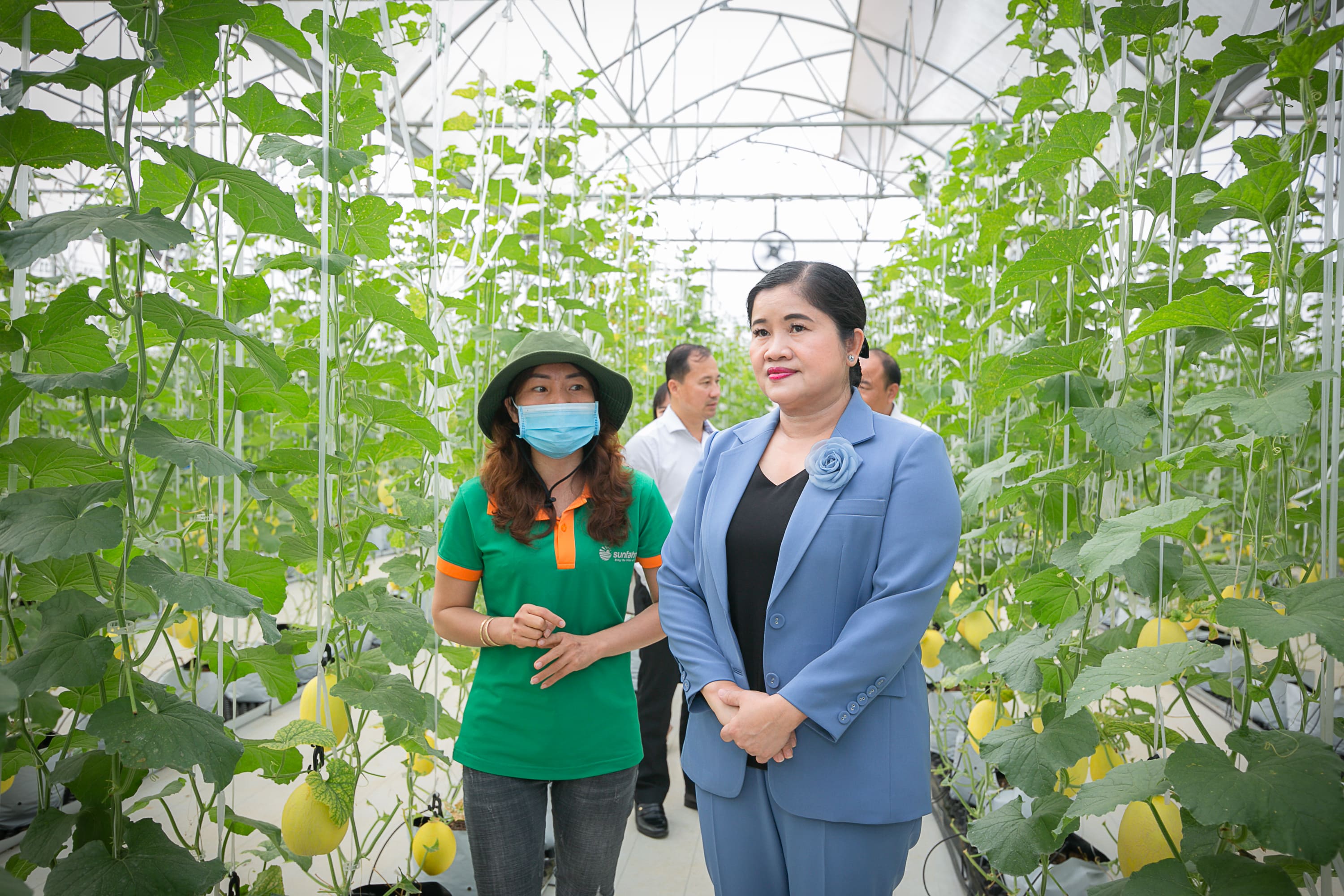Hình ảnh Bà Trần Tuệ Hiền tham quan vườn Dưa lưới Huỳnh Long