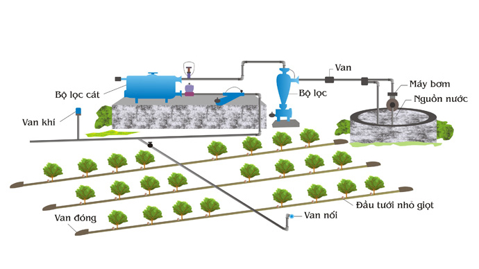 Mô hình hệ thống tưới nhỏ giọt netafim